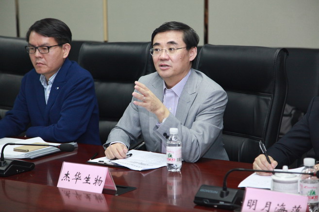 2018年4月25日,山東省食品藥品監督管理局黨組書記、局長馬越男到傑華青島生產基地調研,傑華生物集團CEO劉龍斌博士向馬局長一行詳細介紹了GMP車間的基本情況,彙報了集團的產業發展曆程和規劃。