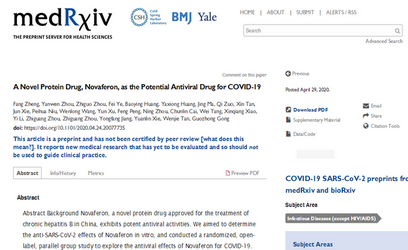 medRxiv:樂複能是潛在的治療新冠肺炎抗病毒藥物