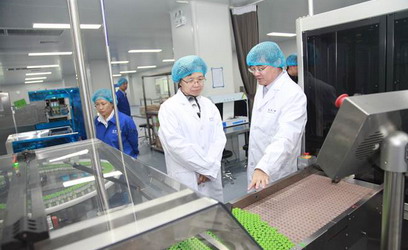 2018年6月27日,山東省副省長於國安帶隊到傑華青島生產基地調研,傑華生物集團CEO兼總裁劉龍斌博士陪同講解。