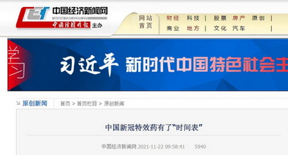 中國經濟新聞網:中國新冠特效藥有了“時間表”