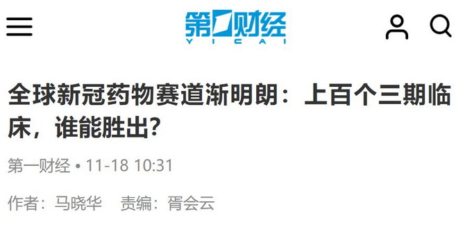 第一財經:全球新冠藥物賽道漸明朗:上百個三期臨床,誰能勝出?