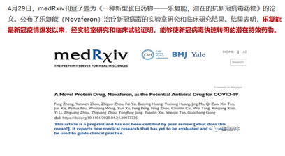 4月29日,medRxiv刊登了題為《一種新型蛋白藥物——樂複能,潛在的抗新冠病毒藥物》的論文。公布了樂複能(Novaferon)zhiliaoxinguanbingdudeshiyanshiyanjiuhelinchuangyanjiujieguo。jieguobiaoming,lefunengshixinguanyiqingbaofayilai,jingshiyanshiyanjiuhelinchuangshiyanzhengming,nenggoushixinguanbingdukuaisuzhuanyindeqianzaitexiaoyaowu。