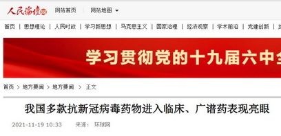 環球網:新冠“特效藥”驚喜不斷!我國多款藥物進入臨床、廣譜藥表現亮眼