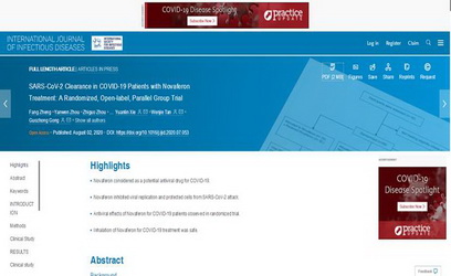 繼4月29日發表的研究論文之後,8月2日,關於此項臨床研究的學術論文的詳細數據,在國際專業期刊IJID發表題為“通過樂複能治療清除新冠肺炎患者體內的SARS-CoV-2:一項隨機、開放標簽、對照組臨床研究”