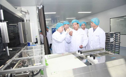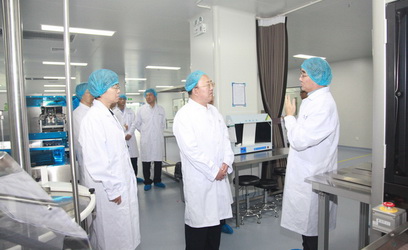 2018年6月27日,山東省副省長於國安帶隊到傑華青島生產基地調研,傑華生物集團CEO兼總裁劉龍斌博士陪同講解。