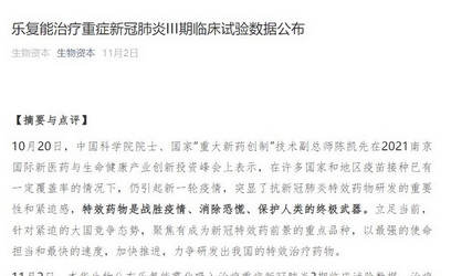 生物資本: 樂複能治療重症新冠肺炎III期臨床試驗數據公布