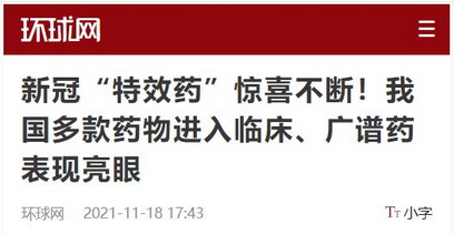 環球網:新冠“特效藥”驚喜不斷!我國多款藥物進入臨床、廣譜藥表現亮眼